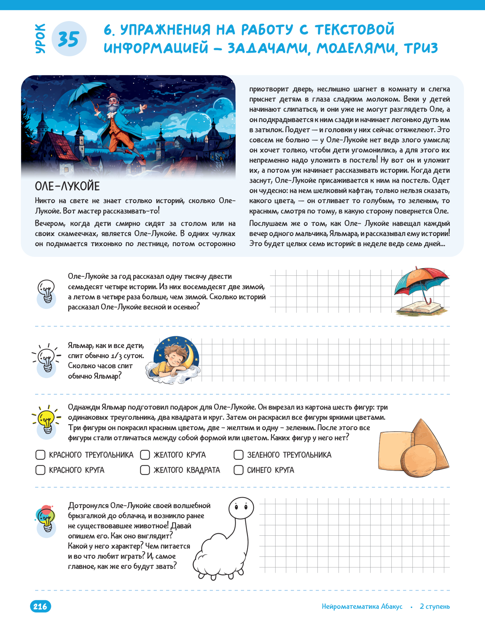 Для максимальной пользы рекомендуем выполнять задания письменно. Так ученик сможет не только решать задачи, но и рисовать, раскрашивать, делать пометки, вести заметки — что отлично развивает внимание и мелкую моторику.
