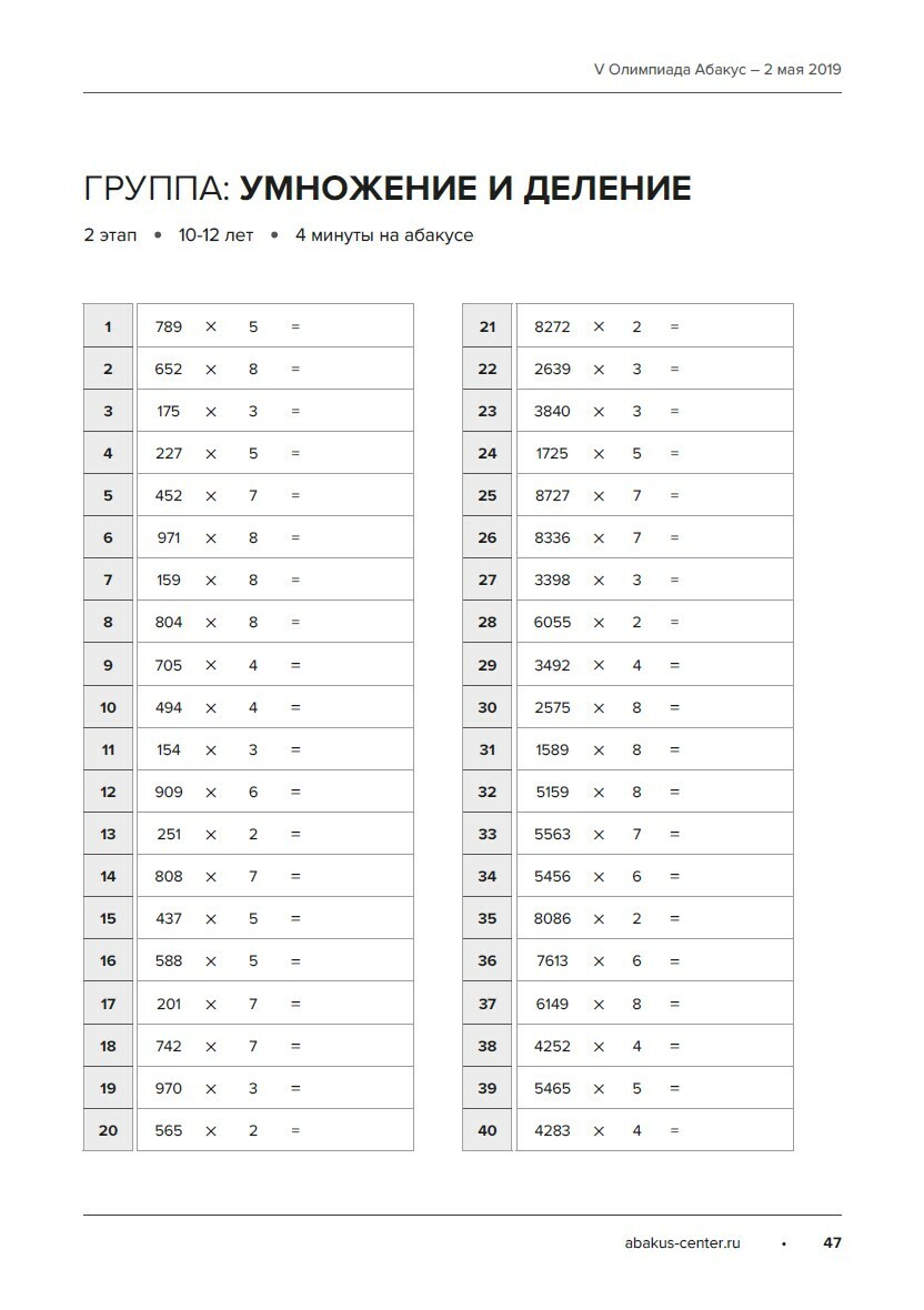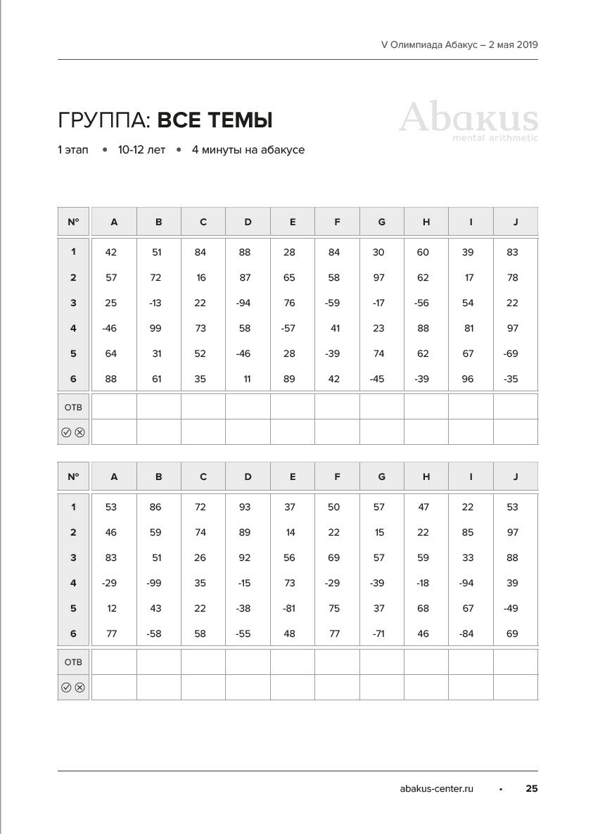 Задания V Олимпиады Абакус