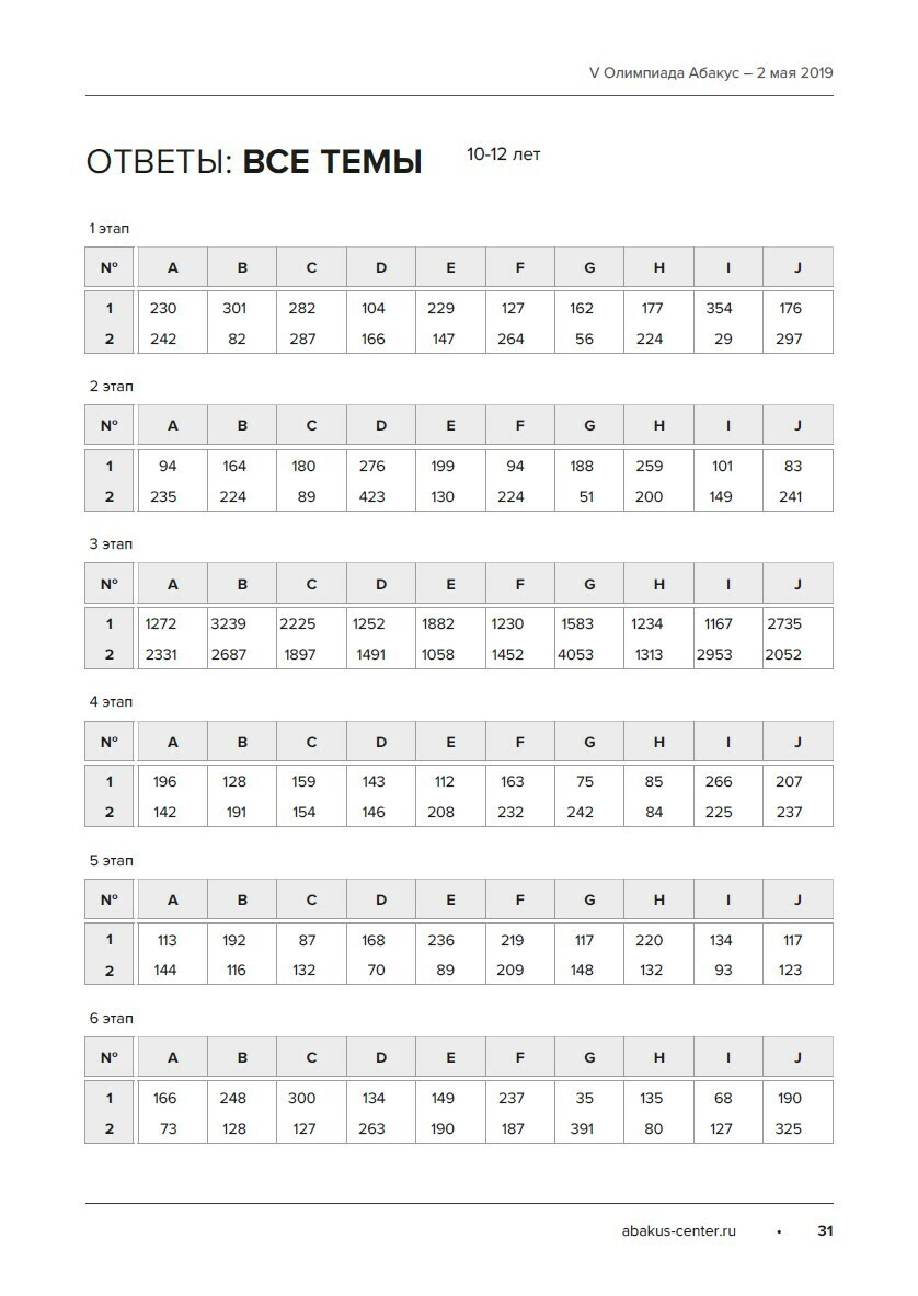 Сборник заданий Олимпиад Абакус центра за 2018-2019 гг. с ответами в формате PDF.